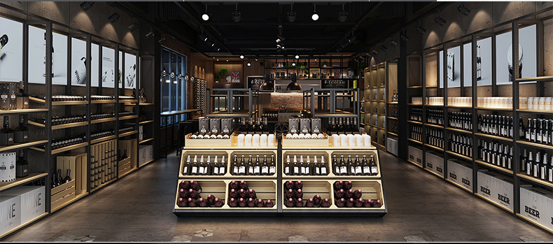 超市紅葡萄酒展示架組合鐵藝商用簡約便利店創(chuàng)意貨架