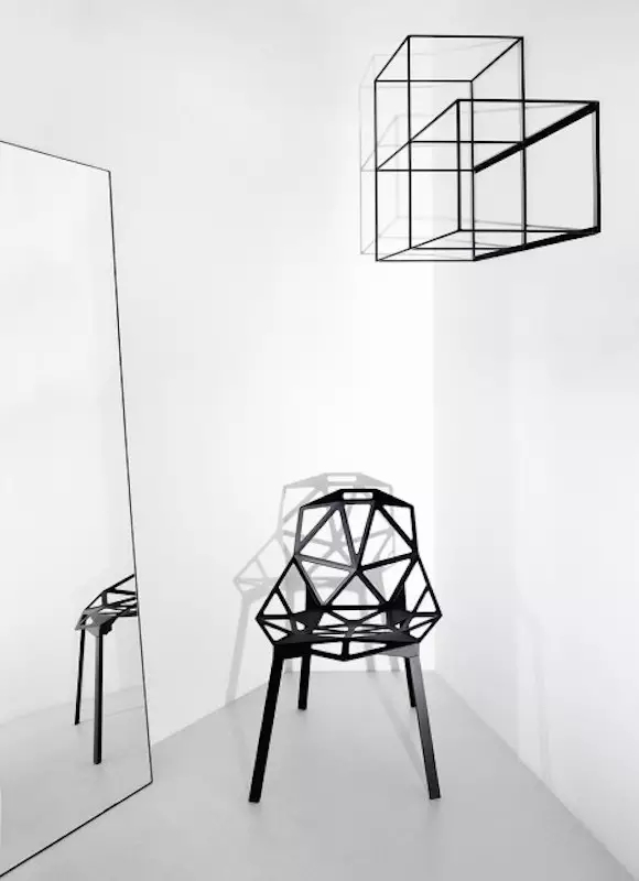 另外,為了配合旋轉(zhuǎn)“樓梯”的棱角和鋼絲貨架的質(zhì)感,整個店里還擺了不少有類似設(shè)計感覺的椅子,在細節(jié)處也體現(xiàn)了滿滿的誠意。