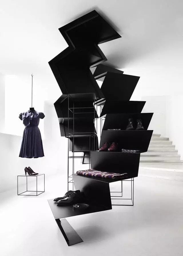 結(jié)果,零售的理念從品牌的設(shè)計(jì)方法上得到了重新引用,他們通過定制的貨架-這些充滿新奇性又有著品牌特色的貨架,來以設(shè)計(jì)把現(xiàn)有的空間結(jié)構(gòu)經(jīng)過調(diào)整,以滿足零售店在功能和商業(yè)上的需求。