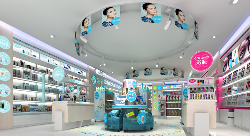 "彩色海洋美妝展柜-化妝品展柜-泉州商正展示用品工貿(mào)有限公司