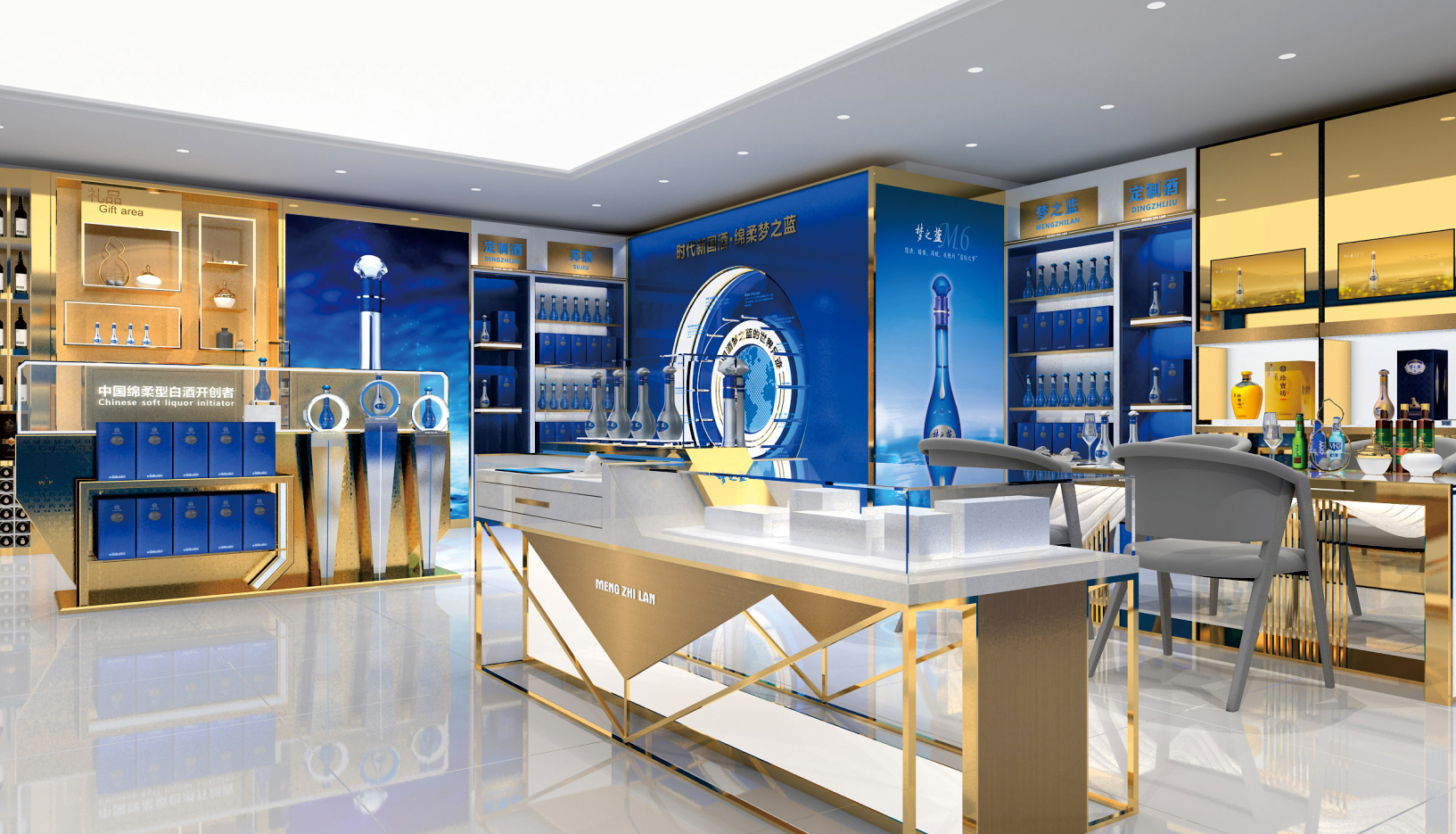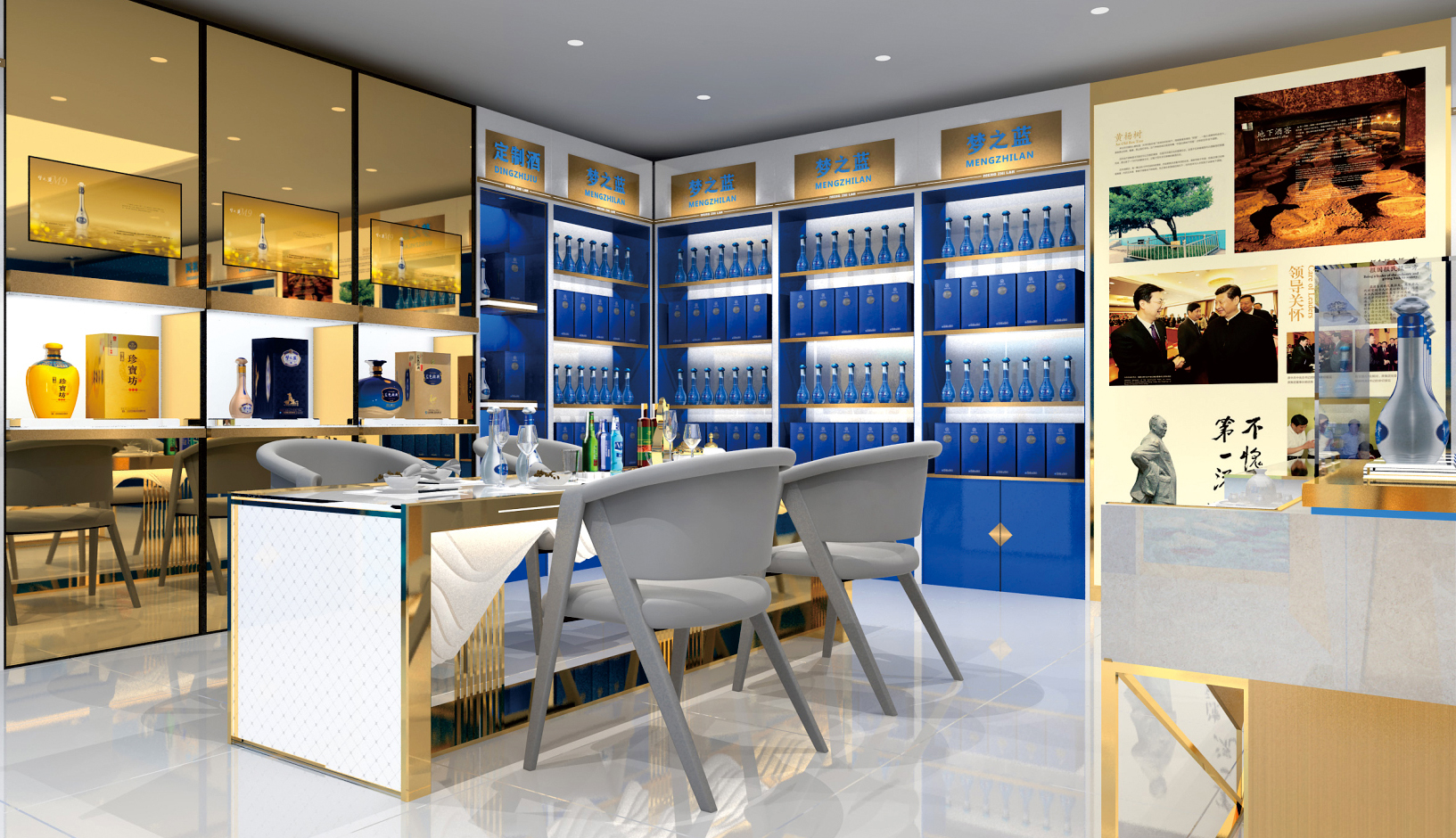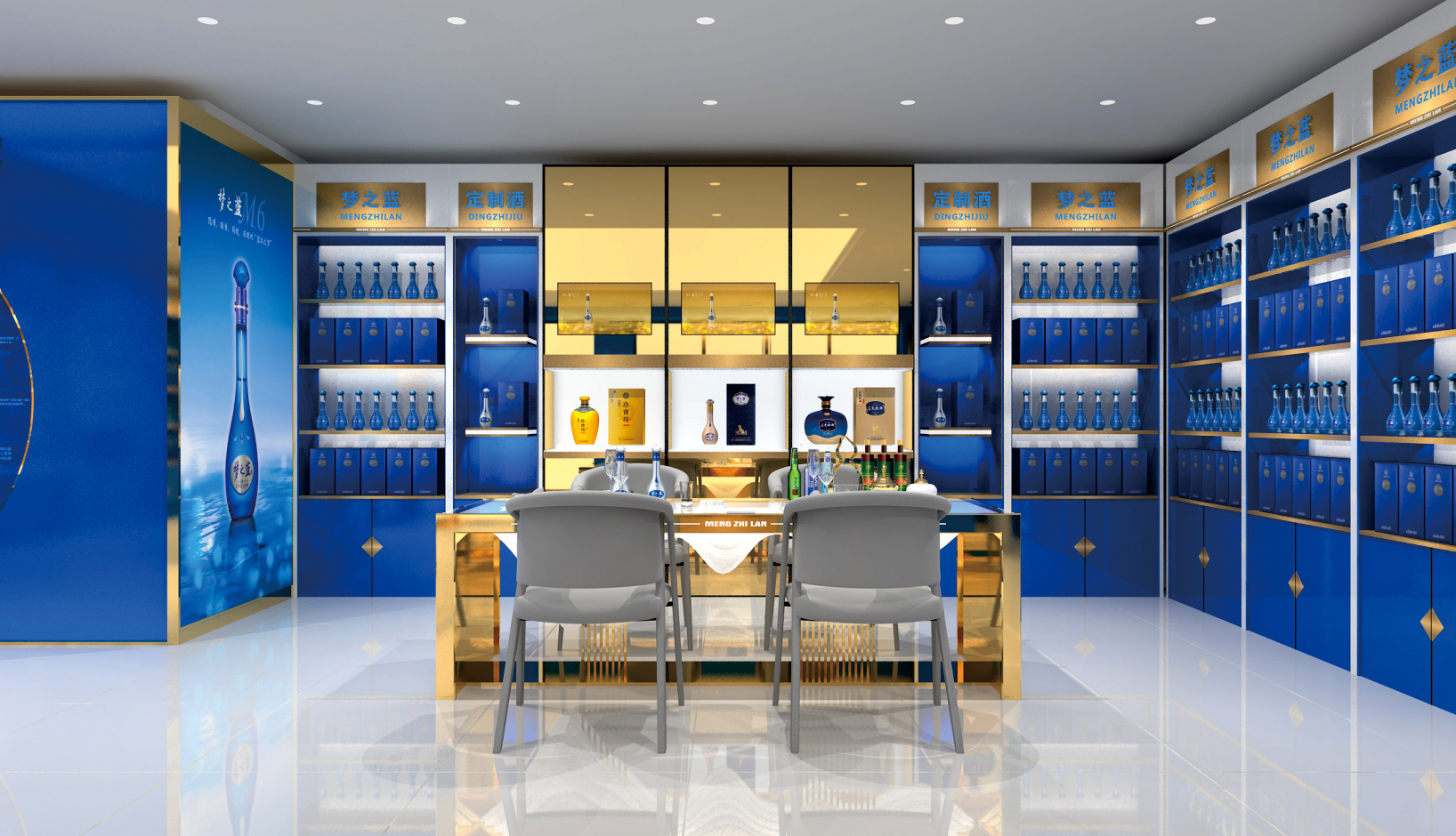 夢(mèng)之藍(lán)展柜,洋河酒展柜,藍(lán)色經(jīng)典展柜展柜定制展柜廠家