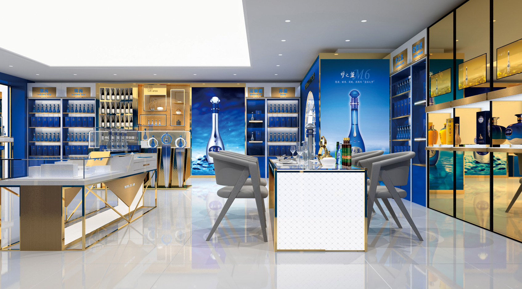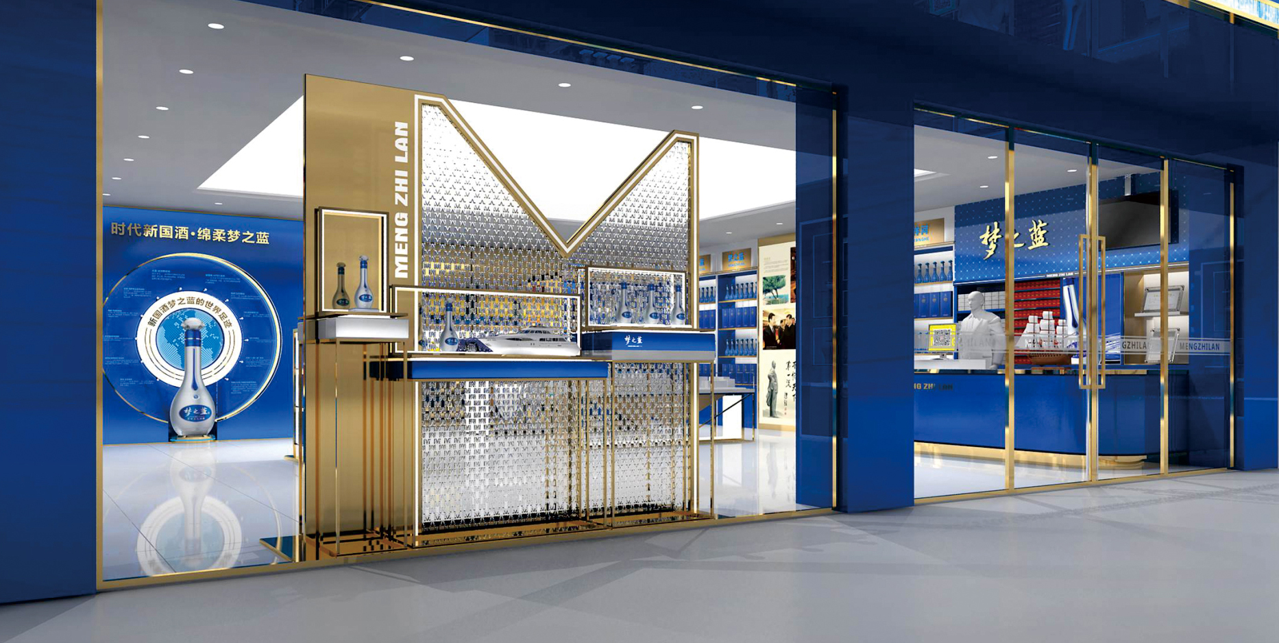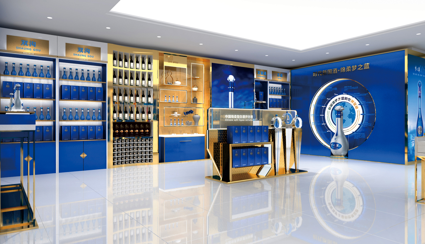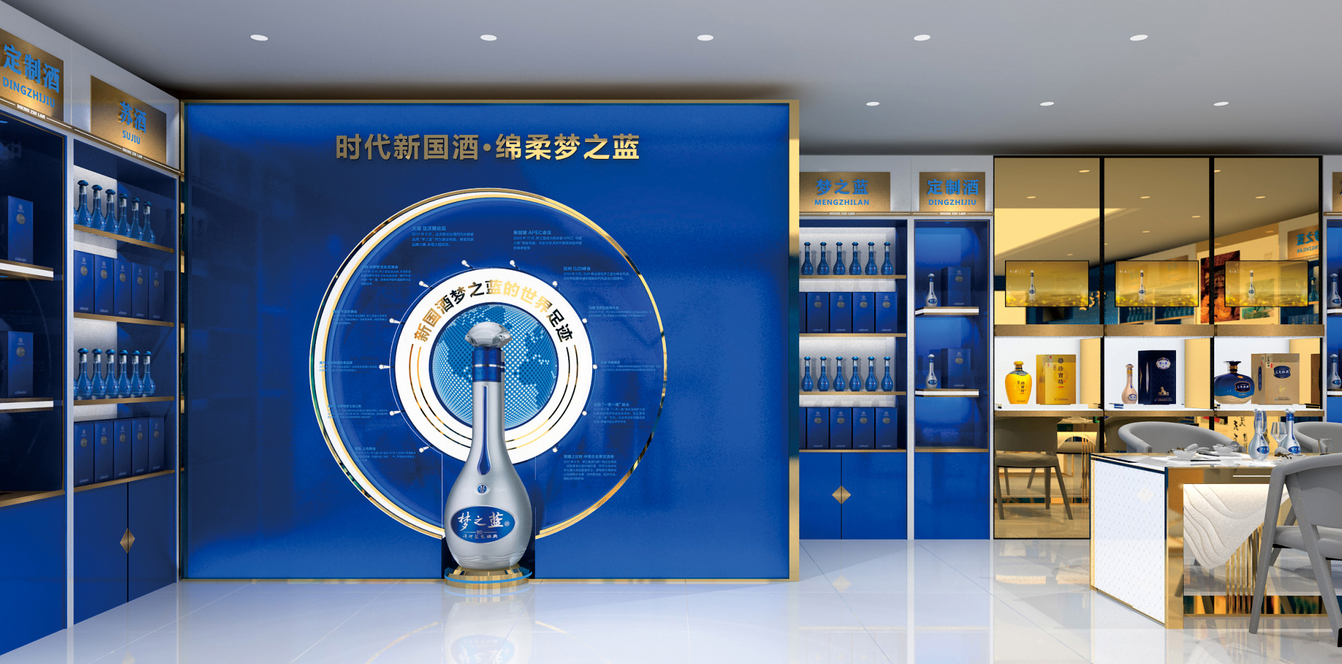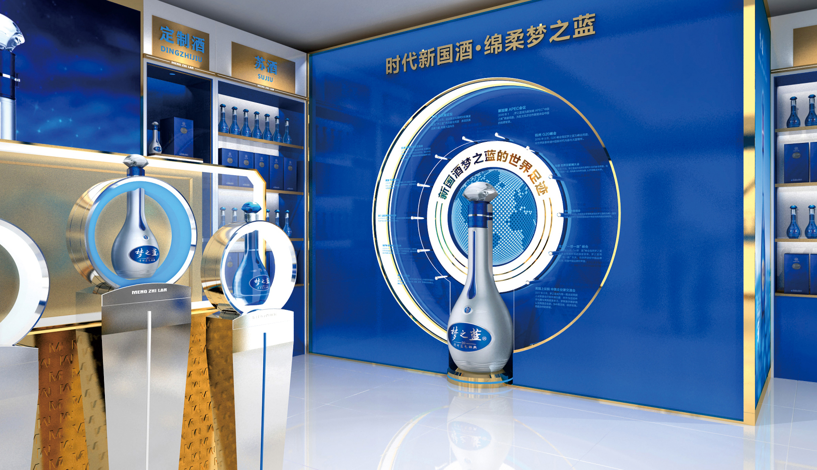 夢(mèng)之藍(lán)展柜,洋河酒展柜,藍(lán)色經(jīng)典展柜展柜定制展柜廠家-品牌酒展柜案例-泉州商正展示用品工貿(mào)有限公司
